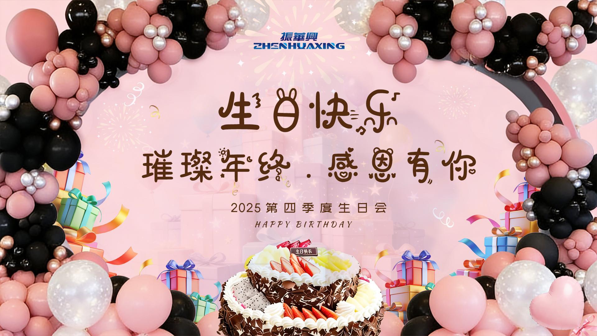 HAPPY BIRTHDAY生日快乐 冬日微澜,岁末情深。12月27日,在这辞旧迎新的美好时刻,振华兴智能第四季度员工生日会如约而至。行政团队为本季度的寿星们精心筹备了一场温馨、喜悦的暖心聚会,大家齐聚一堂,在欢歌笑语中定格专属的生辰回忆。 生日会现场 为了让寿星们感受到家一般的温暖,公司提前对活动现场进行了精心装点。五彩斑斓的气球与温馨的视觉布景交织出浓厚的节日氛围。丰富的下午...